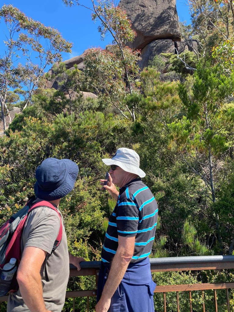 We returned to Launceston, where fourteen days ago we began our adventure. First stop was Cataract Gorge where Wayne completed the trifecta of height challenges. First, the chair lift; then the goat track without rock walls in some places; and finally, the swaying suspension bridge. He passed with flying colours and is now ready to progress to the Overland Track.