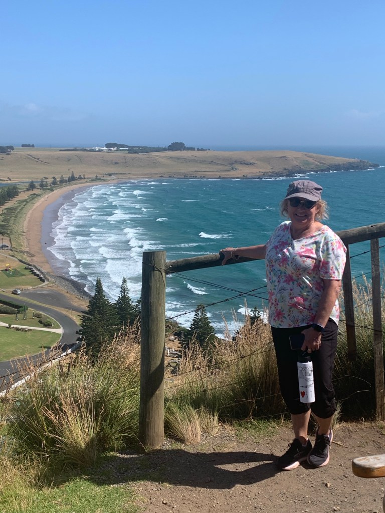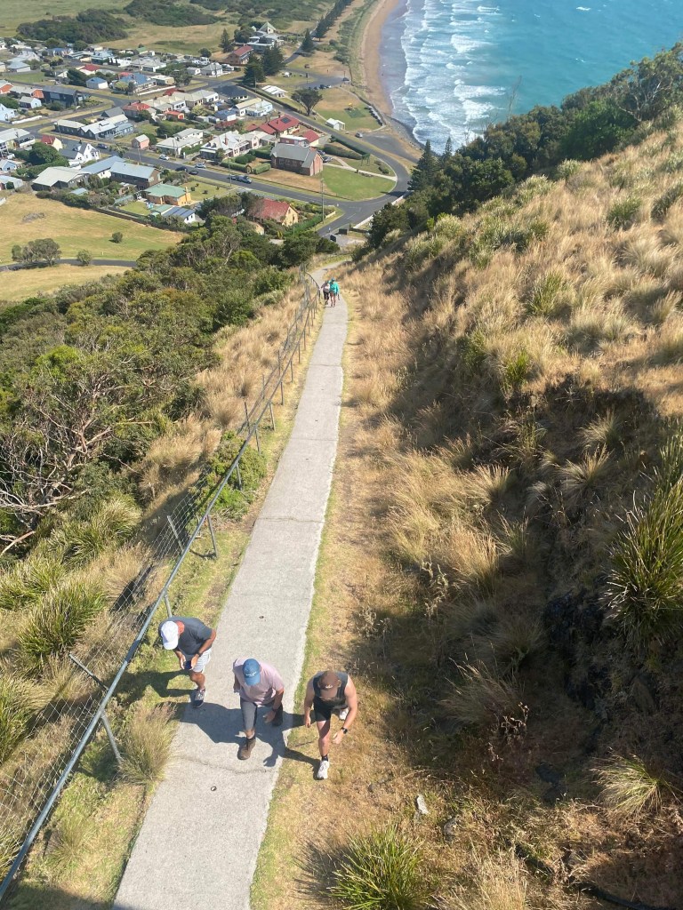 We then drove down to The Nut and commenced the 400m steep ascent to the top. It was hard going, particularly when a man ran past us, but we did it.