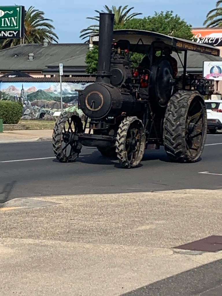 Only inTassie – a steam tractor rolling into the Drive-through!