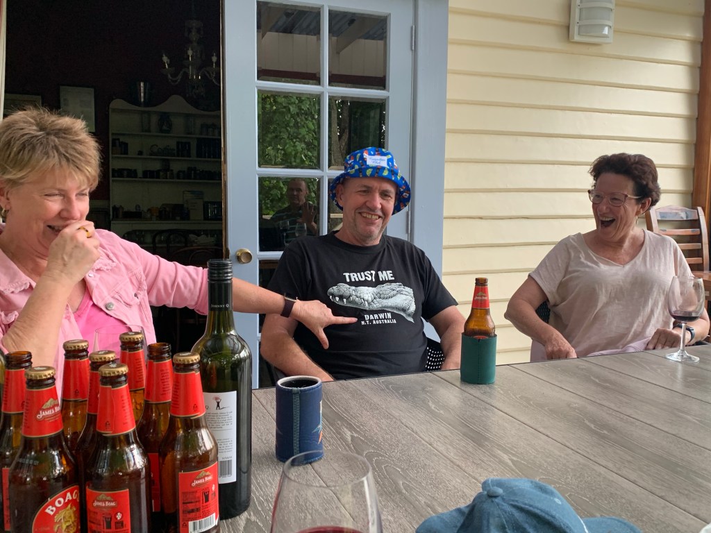 On our way home, we stocked up ready for our farm stay and some of us enjoyed a night cap in Robbie and Al’s room.
